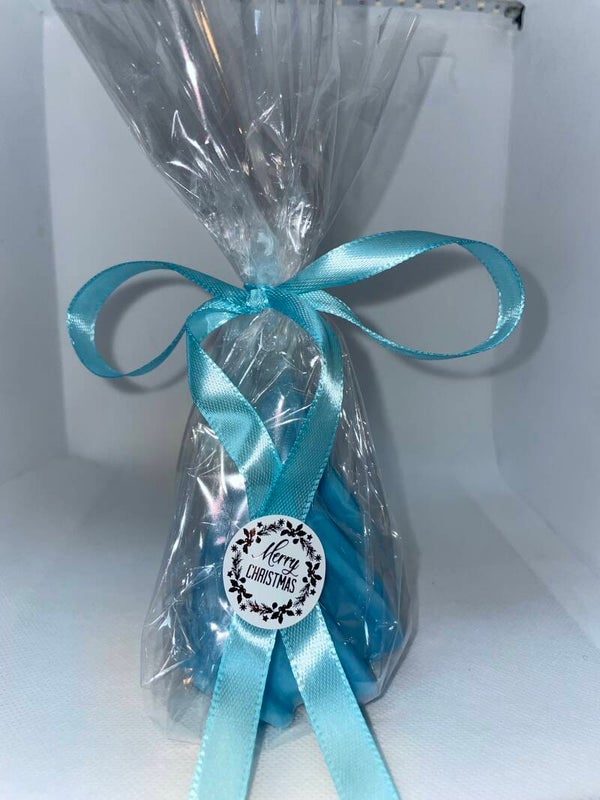 Elegante bougie décorative azur, moulée à la forme de sapin.