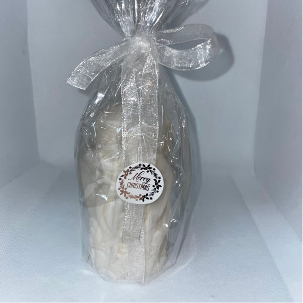 Bougie decorative blanche moulée en relief avec des dauphins.