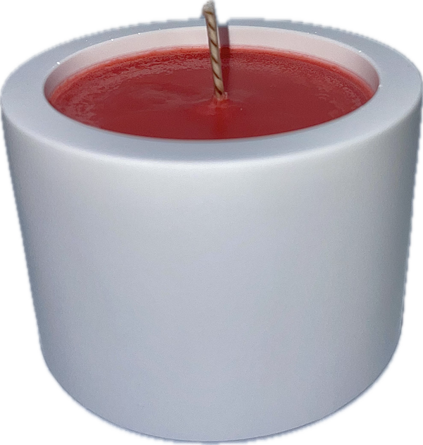 Bougie parfumée dans un élegant contenant rond en platre, fait à la main.