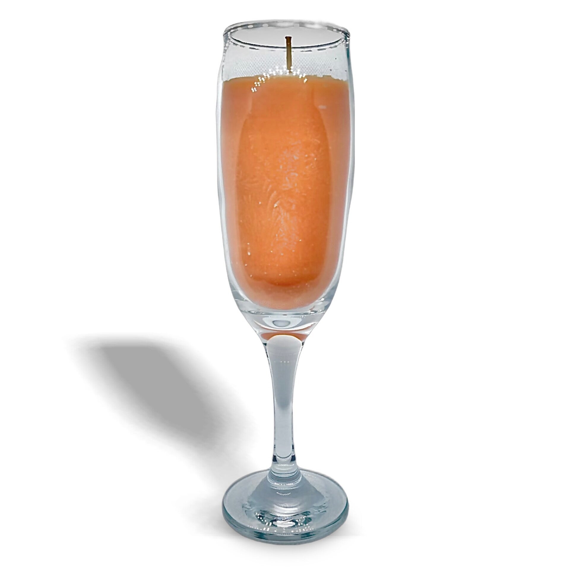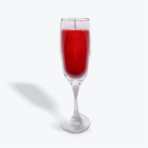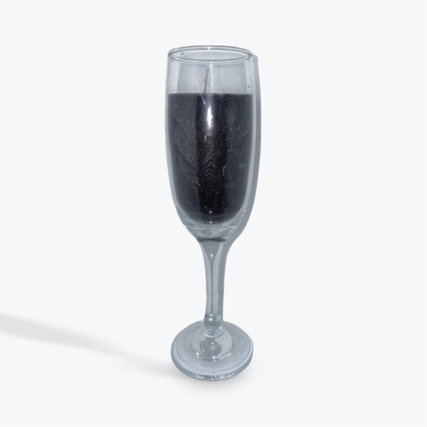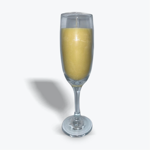Bougie coulée dans une élégante flûte de champagne. Idéale pour décorer vos espaces ou vos tables de fête.
