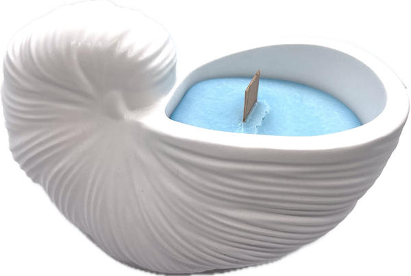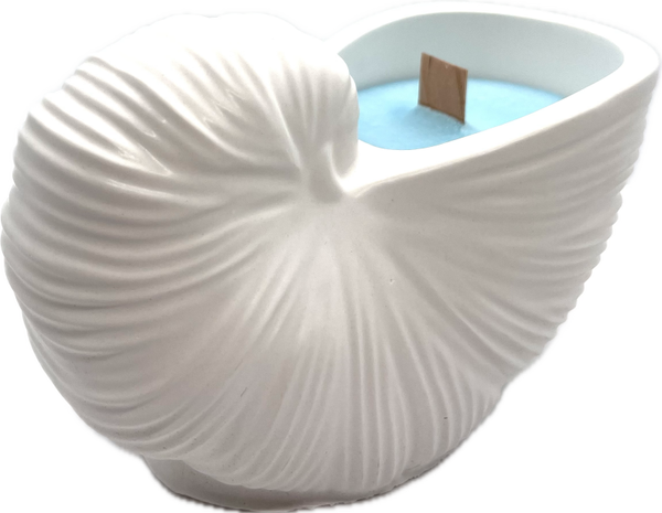 Elegante bougie parfumée coulée dans un coquillage crée à la main avec une résine minérale écorésponsable et non toxique.